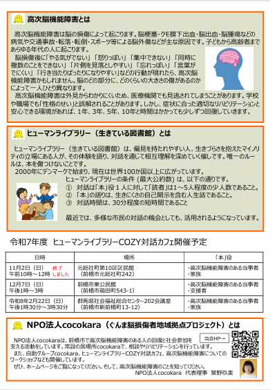 cocokaraワークショップ『高次脳機能障害 生活への影響と対応』